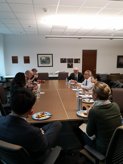 主管法律诊所教育的六位教授以午餐会的形式另就中美的法律诊所教育问题进行了充分的交流和讨论。分管法律诊所教育的Paul D. Bennett教授以及Kristine A. Huskey等教授分别介绍了美国法律诊所教育的特点以及亚利桑那博彩平台