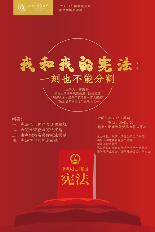 2019年12月3日晚,为迎接第六个国家宪法日,“我和我的宪法,一刻也不能分割”主题讲座在博彩平台
