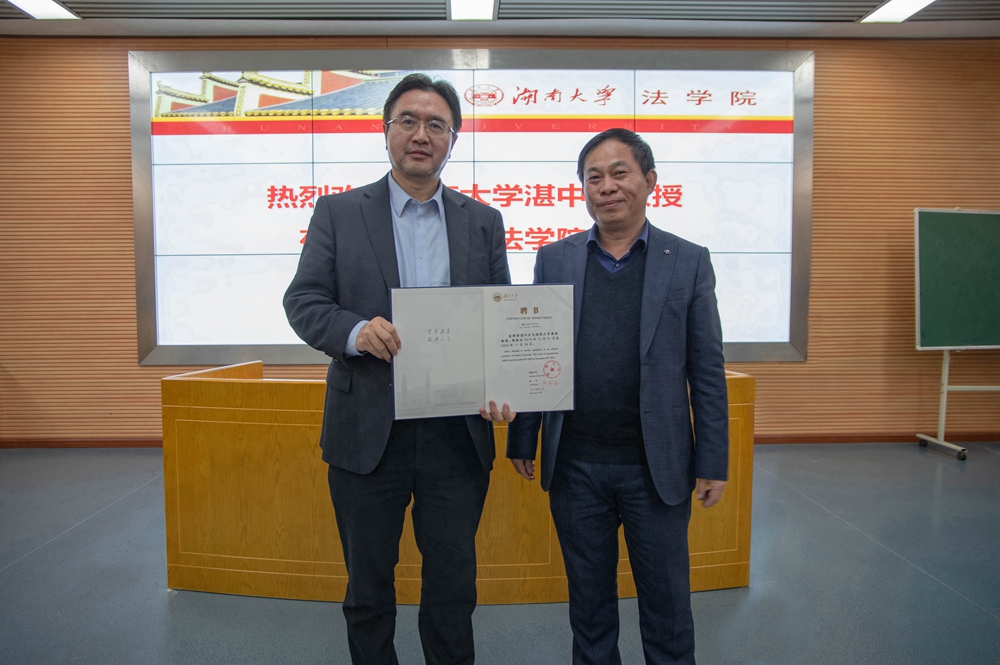 党委书记易骆之为湛中乐教授颁发聘书并为其佩戴校徽。湛中乐教授在致辞中感谢博彩平台