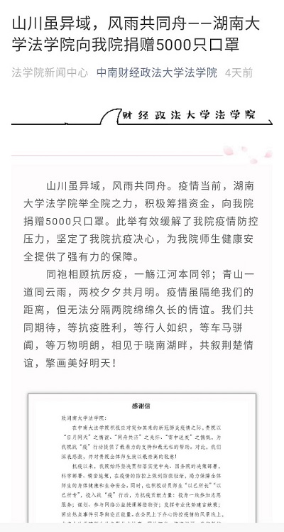 也于元月24日成立疫情防控工作小组,并建立疫情防控应急机制,一方面确保分散在全国各地的全体师生员工的生命健康安全,另一方面积极为疫情防控建言献策,促进依法防疫。