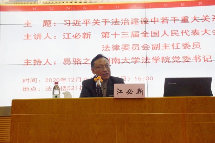 2020年12月20日下午,第十三届全国人民代表大会宪法和法律委员会副主任委员江必新教授做客岳麓法学名家讲坛,为博彩平台
