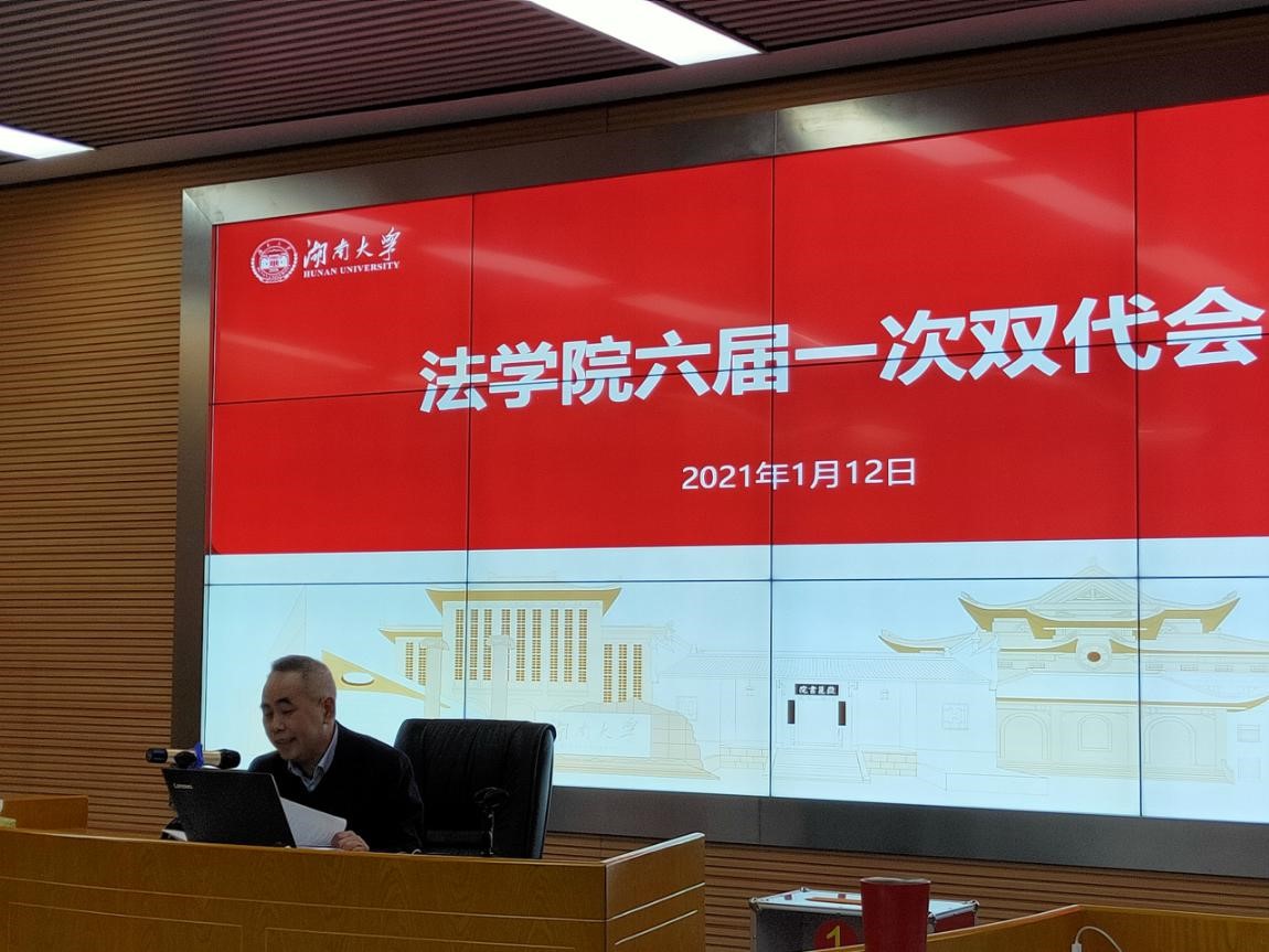 屈茂辉院长在工作报告中全面总结学院过去一年取得的成绩,分析存在的问题。在人才培养上,学院大力推进教育教学改革,成功举办第一届全国法科学生写作大赛,大赛入选2020年度全国法学教育新闻。实现了学院国家级一流课程的突破,获评省级线下一流课程,推荐参评省级精品课程2门。实施研究生教育教学质量提升工程,获省研究生培养创新实践基地项目、省学位与研究生教育改革研究项目。本科生源和研究生生源明显改善;科学研究取得新突破,全年新增科研立项32项,其中国家社科基金项目7项,立项数名列前茅,省社科基金法学立项数并列全省第一。在《中国社会科学》、《法学研究》等期刊发表诸多高水平论文,包括CLSCI论文15篇,A类期刊12篇,获第八届高等学校科学研究优秀成果2项。举办了第二届中国自然资源法治论坛和第九届岳麓刑事法论坛。
