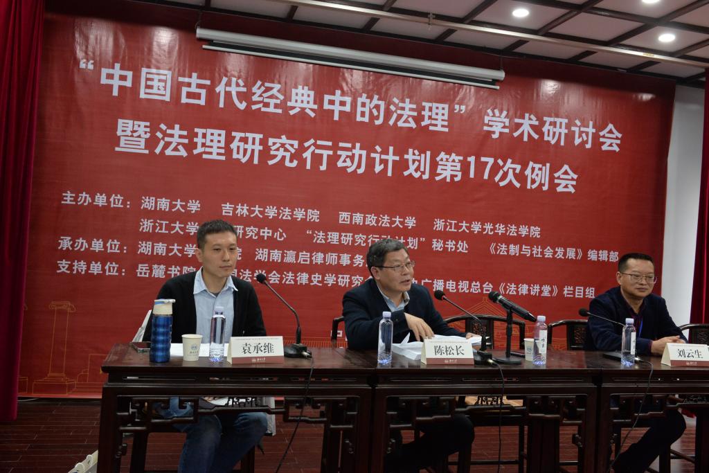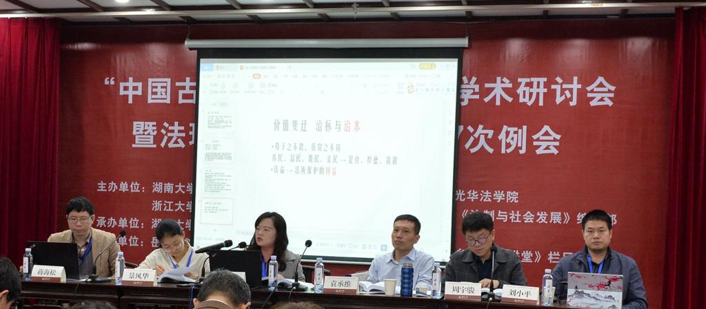 岳麓书院助理教授、台湾学者袁承维主持。主持人提到,本组论文从源头上分析中华法系基础法理的起源和古代法理概念的形成,也为后续各单元的讨论确立了前提。同时本环节的主讲人、主持人的配置也体现了大陆与台湾的学术交流。