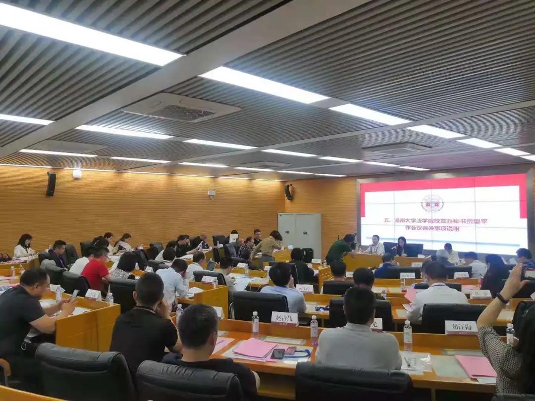 是单一法学学科的学院,拥有69位全职教师和10多位非全职工作型教师,名誉院长是著名法学家姜明安教授。学院正致力于进行新文科项目建设,实现法学和信息科学的结合。学院培养人才要秉持着“厚基础、宽口径”的原则,实现70%左右的升学率,包括出国深造。在科学研究方面,教师要注重社会影响力,科学研究和社会服务如同车之两轮、机之两翼。学院一直保持国家重大项目、年度项目、后期项目名列国家前二十名的水平。目前,学院正积极落实周强院长在3月31日来学校进行调研考察的指示精神,加快同信科院、超算中心的紧密合作,获得探索智慧法治,智慧司法的项目支持。5月11日晚,校长领导学校与国家法官学院签订了全面的战略合作协议,以期在人才培养、科学研究、教师挂职锻炼以及平台建设方面走向新阶段。学院正牵头申报智慧司法的项目经费,同时会利用此机会建立智慧法治研究院、智慧司法重点实验室,希望能够建成国家首批智慧司法的国家重点实验室。学院还设立了专门的学术出版基金,支持、鼓励每位老师在自己的领域内自由探索,出版学术著作。在社会服务方面,以学院组成团队的形式为地方提供法律服务。最后,屈茂辉院长展望了未来深圳研究院、重庆研究院、青岛研究院、无锡研究院四个文科地方研究院的落实,希望得到各位校友的积极响应和大力支持。
