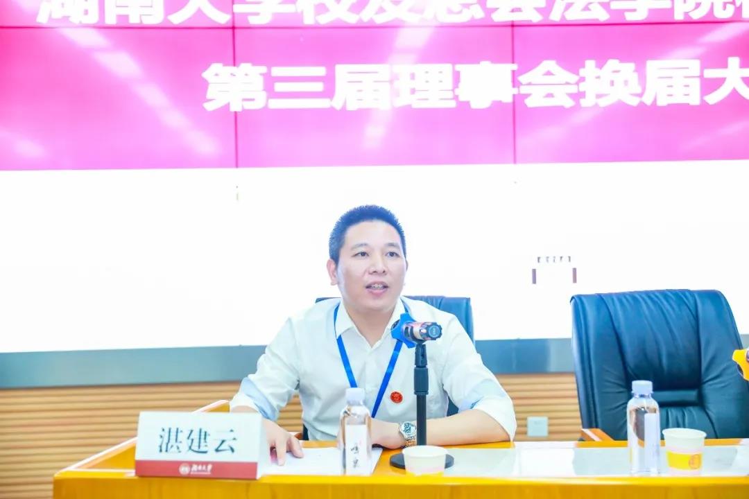 99级本科、03级硕士、07级博士校友代表,现任湖南省委党校法学教研部主任彭澎发表讲话。他先介绍了湖大博彩平台