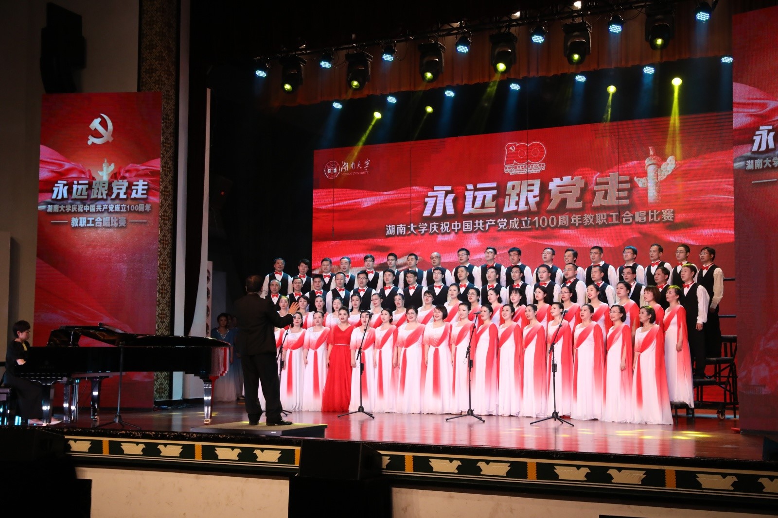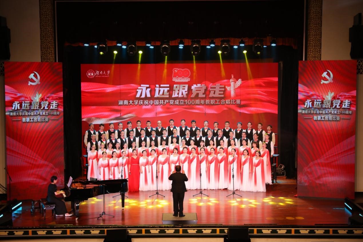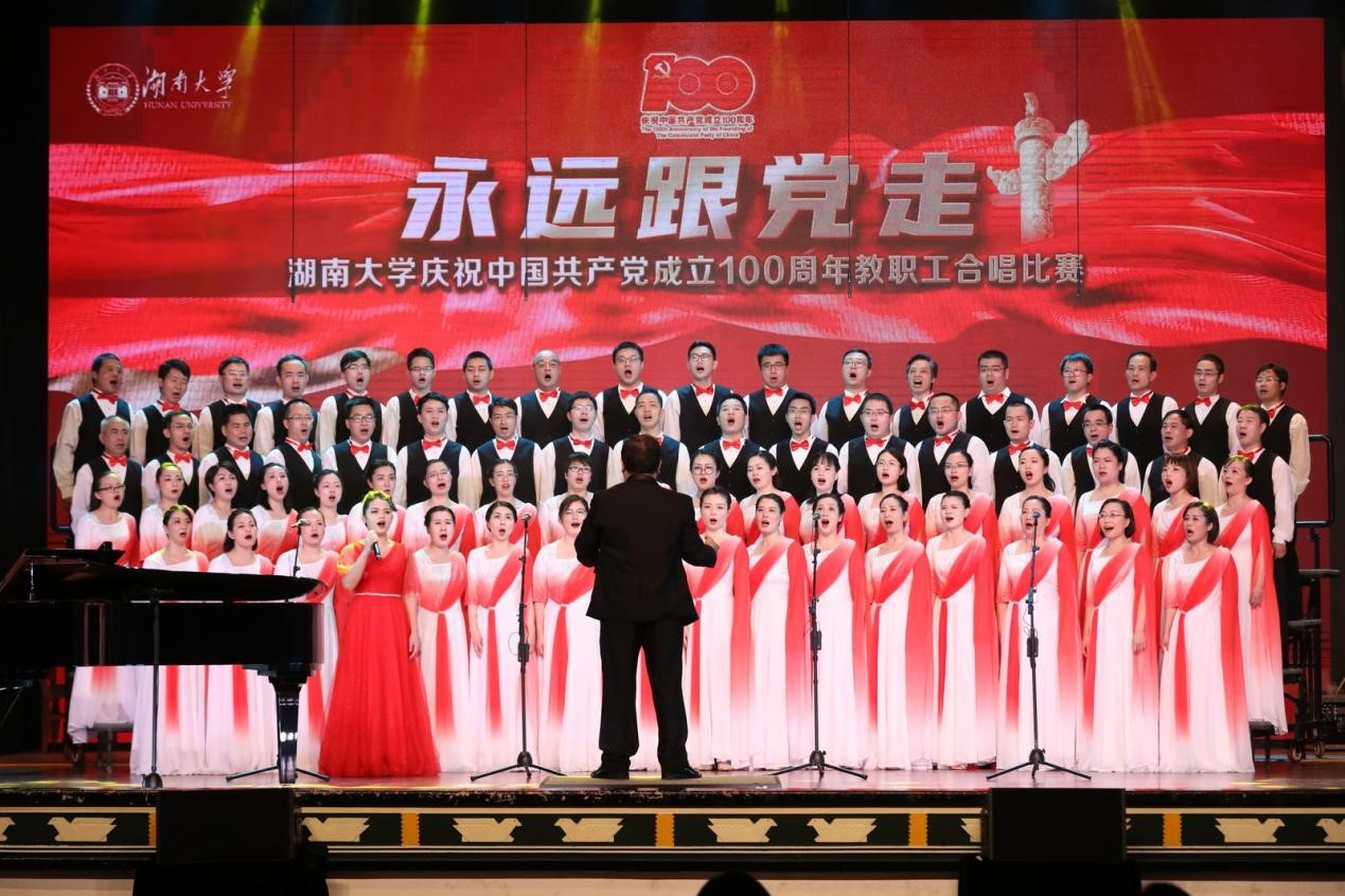 “庆祝中国共产党成立100周年教职工合唱比赛”在大礼堂拉开帷幕,34个二级部门工会、以及博彩平台