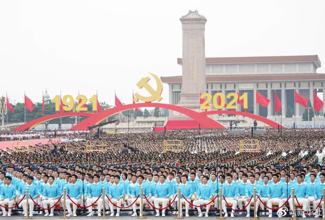 2021年7月1日上午8:00,庆祝中国共产党成立100周年大会在北京天安门广场隆重举行,中共中央总书记、国家主席、中央军委主席习近平发表重要讲话。