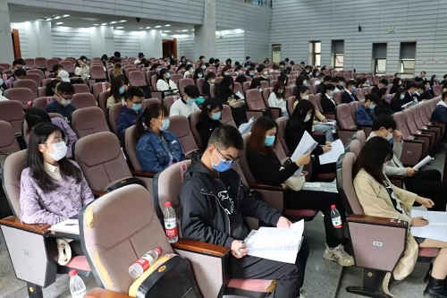 团委书记、本科生2020级辅导员美丽努尔·图尔荪老师,本科生2021级辅导员张丹老师及本科生2018级辅导员谷雨老师出席大会。为切实落实疫情防控责任,本次大会设立本科生主会场和研究生分会场。