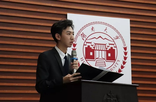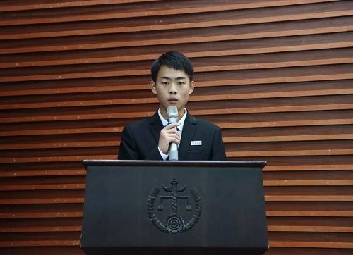(学生会主席团候选人金博涵发表竞选演说)