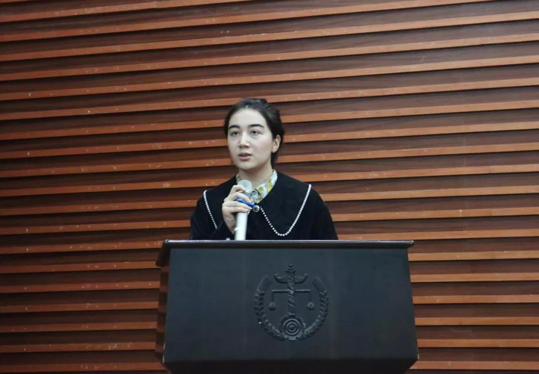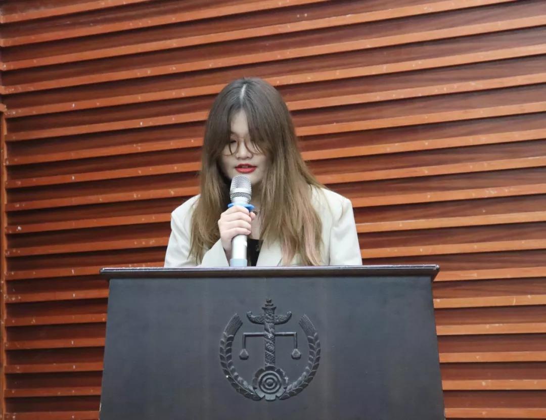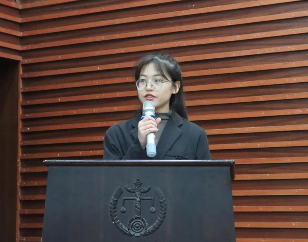 余冰琳作为代表分享活动成果。团队成员响应“到基层中去,到实践中去,到人民中去”的号召,在基层司法机关实习。