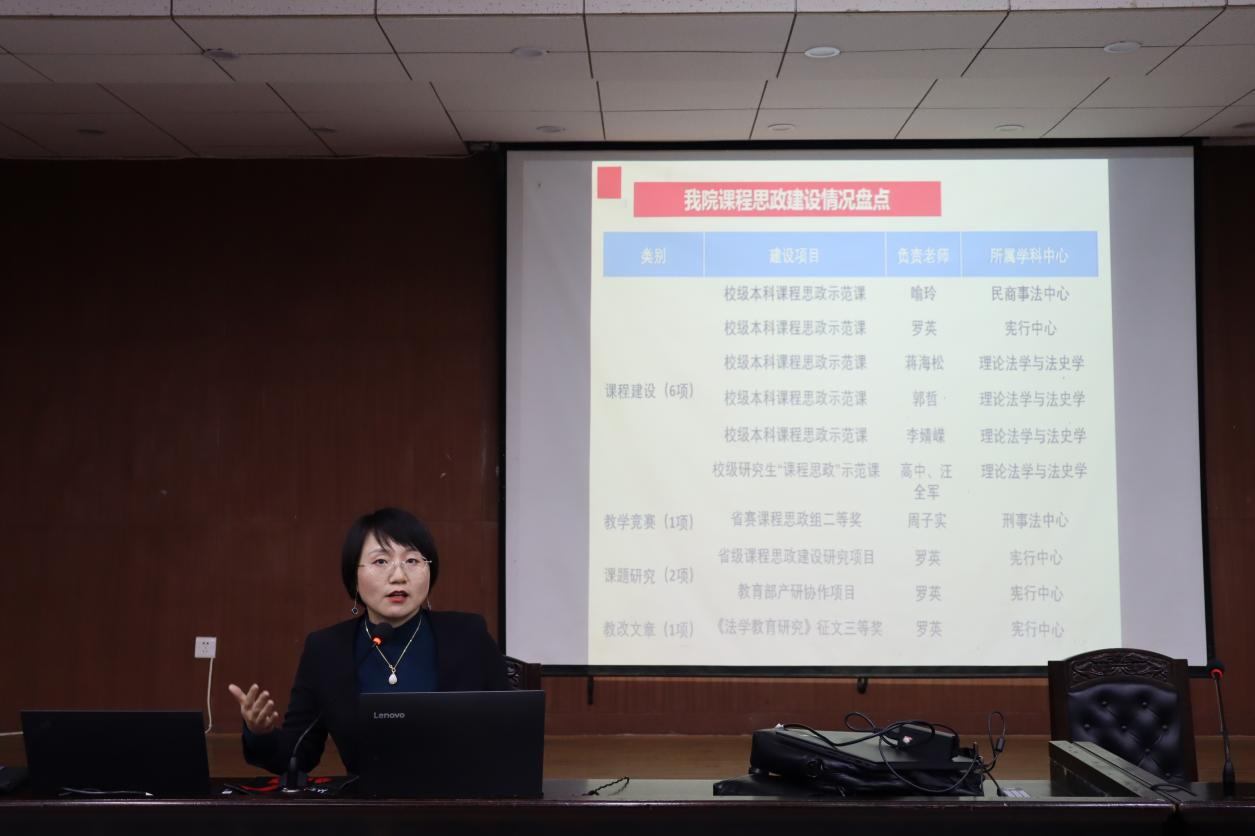 党委副书记罗英副教授介绍了法学专业课程思政研究中心的筹划情况。她首先从“我们有什么”的维度对博彩平台
