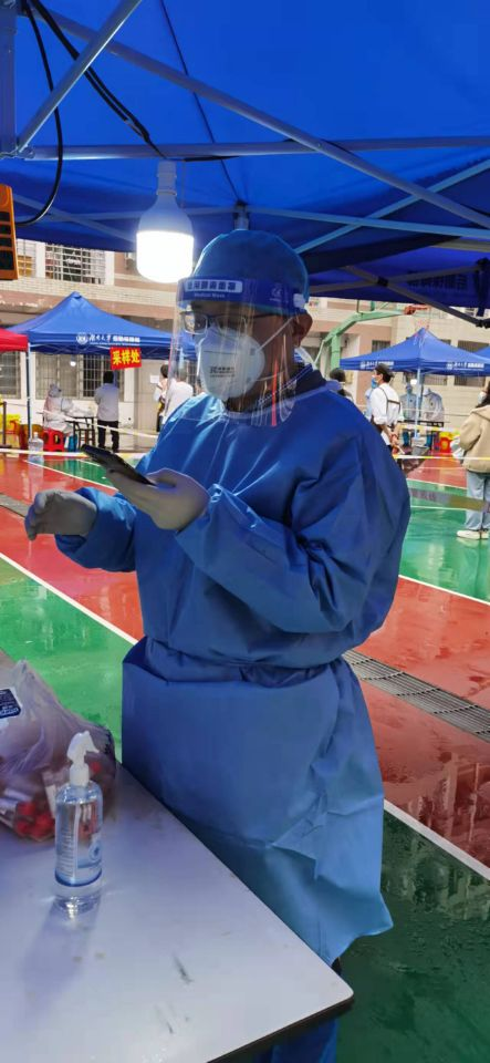 李勤通老师是一位成果丰硕的法制史青年学者。疫情袭来之下,他没有置身事外,而是带着对湖大对同学们的浓烈感情,主动请缨担任志愿者。他协助医护人员采核酸,引导学生,维持现场秩序,录入二维码,登记相关信息,辛勤工作。