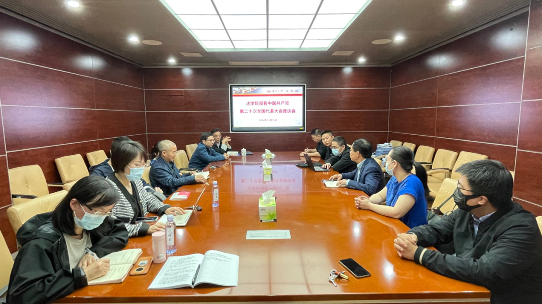 集中观看结束后,院党委马上在405会议室召开座谈会,座谈会由院党委书记易骆之主持,全体领导班子成员、教工党支部书记出席座谈会。会上,老师们热议观看大会后的感想体会,再次学习中国共产党第二十次代表大会报告内容。