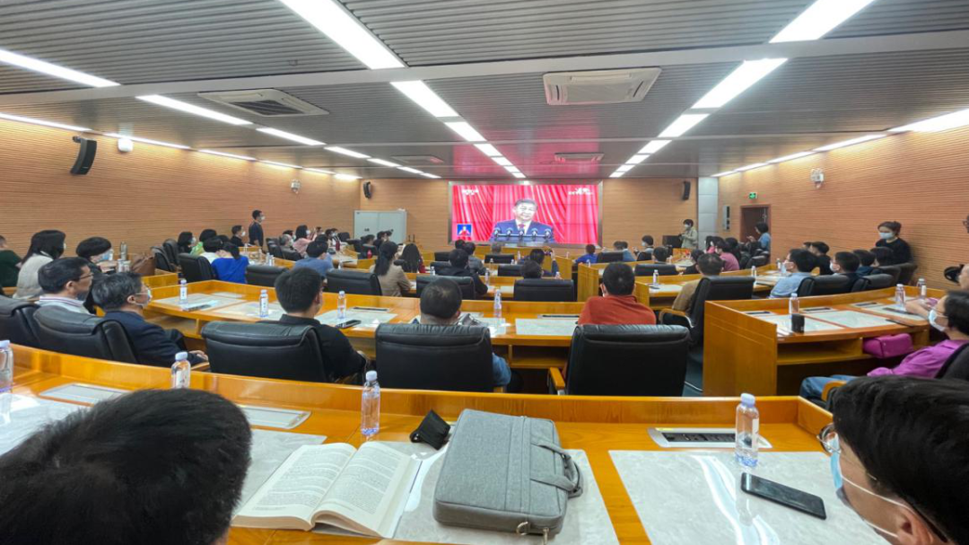 党委按照相对集中、全面覆盖原则,利用会议室、报告厅、教室、腾讯会议等方式组织全体师生集中观看大会。