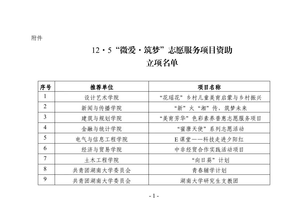 该志愿服务项目旨在12.5国际志愿者日来临之际,进一步号召湖大青年积极参与志愿服务活动,弘扬“奉献、友爱、互助、进步”的志愿者精神。经过项目申报、学院初评、学校评选的评选流程,全校有15个项目获得资助立项。其中,博彩平台
