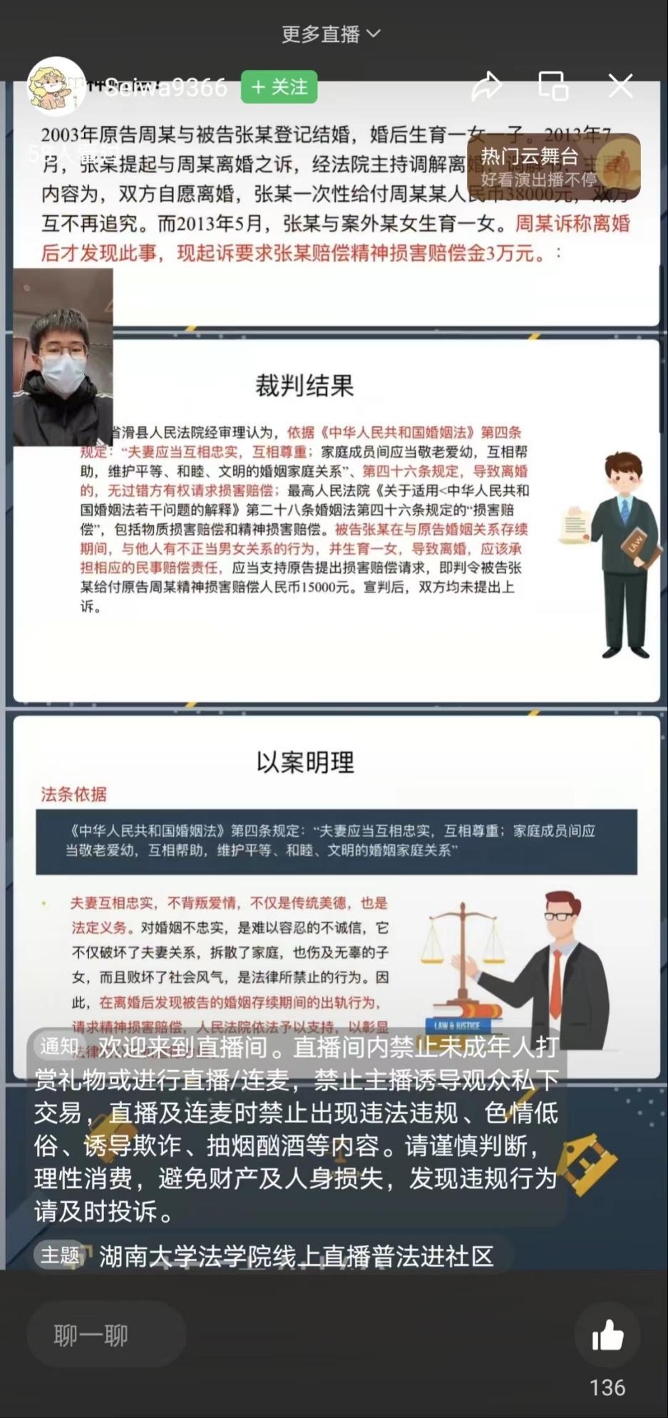 此次直播主要围绕离婚纠纷、劳动纠纷、消费者权益这三部分展开。在具体讲解过程中,主讲人结合了多个典型案例进行说理,详细解答社区居民生活中密切关注的法律问题。同时,博彩平台