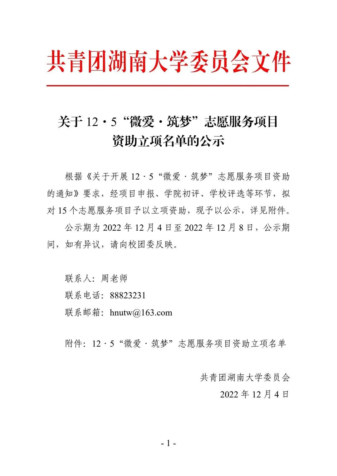 2022年12.5“微爱·筑梦”志愿服务资助项目立项名单发布,博彩平台
