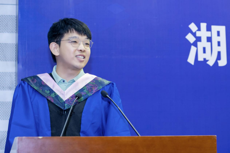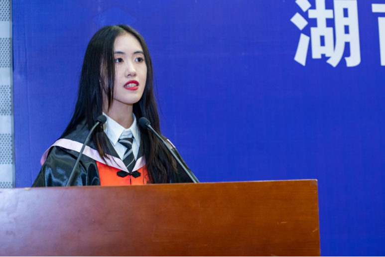 毕业即离别,千言万语道不尽。学生代表发言环节中,本科毕业生代表张盈欣、硕士毕业生代表张键依次发言。他(她)们深情回忆了在湖大博彩平台