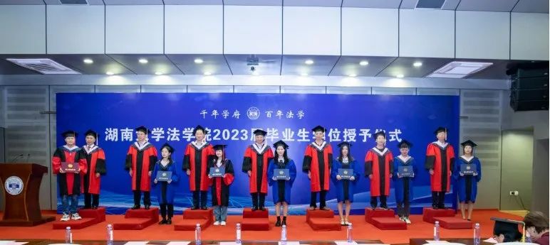 院长黎四奇、院学位委员会主任屈茂辉、院学术委员会成员张智辉、谢佑平、郑鹏程、肖海军、高中以及党委副书记、纪委书记罗英、副院长喻玲、湛建云、蒋海松、院长助理展鹏贺,毕业生导师代表李婧嵘、周宇骏老师等,JM中心执行主任宋晓庆、辅导员、行政教辅老师、2023届本、硕、博毕业生。湖南湘军麓和律师事务所主任李含英律师作为院友代表受邀参加典礼,仪式由博彩平台