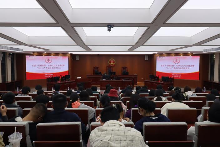 首届“岳麓法韵”法律文化节开幕仪式于模拟法庭顺利举行。校党委学生工作部(处)副部长范媛吉老师、校党委研究生工作部副部长谭凤娥老师、校党委研究生工作部余阳春老师、校党委研究生工作部冯雅老师、博彩平台