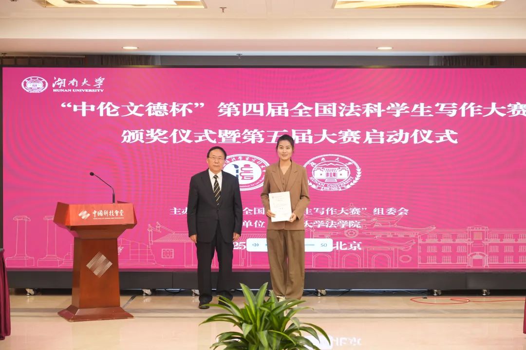 传法理文德,写锦绣华章。2025年4月20日上午,“中伦文德杯”第四届全国法科学生写作大赛颁奖仪式暨第五届大赛启动仪式在北京中国科技会堂举行。