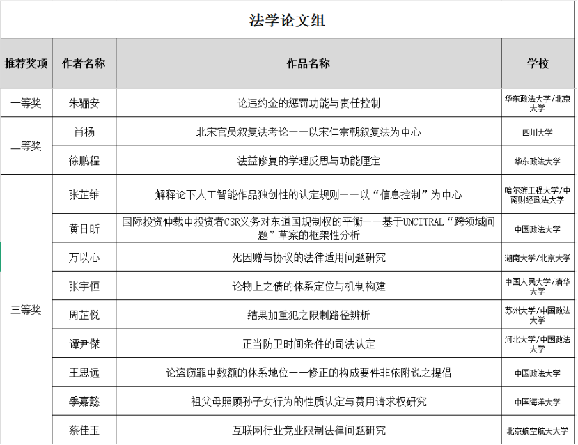 附:“中伦文德杯”第四届全国法科学生写作大赛获奖名单