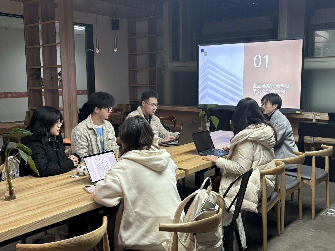 (图为第一次见面会上届金陵杯成员经验分享)