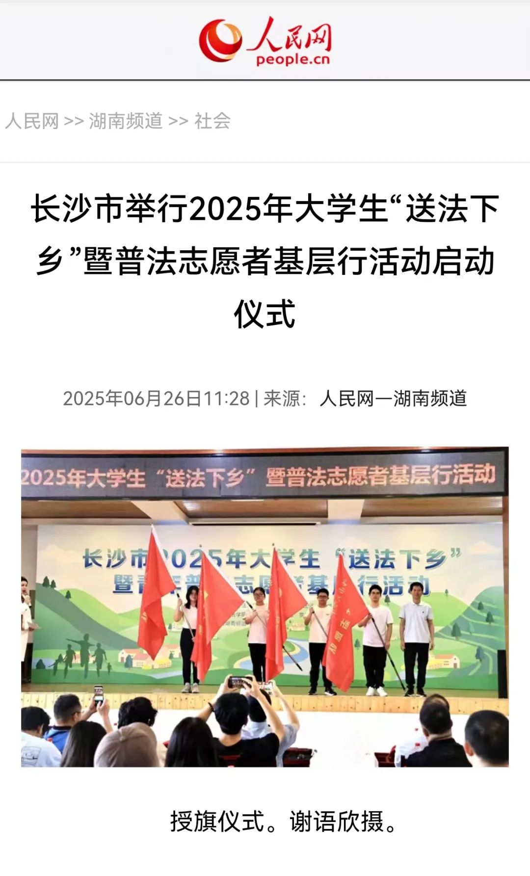2025年6月25日,长沙市2025年大学生“送法下乡”暨普法志愿者基层行活动顺利开展。本次活动是由长沙市守法普法工作办公室、长沙市司法局、开福区司法局主办,由博彩平台