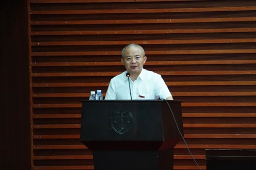 紧接着,导师代表吴维锭老师上台发言。作为同学们未来法学求学路上的同行者,吴老师结合自身近 30 年的人生与求学感悟,从如何平衡努力与结果、如何看待人生节奏等角度,为新生们送上恳切建议。他强调,学术与人生皆需 “久久为功”,既要明白努力是成功的重要基石,更要懂得找对方向、关注过程的意义,不必过度纠结于即时结果。同时,他以自身在多所高校的求学经历为例,鼓励新生珍惜湖大时光,在专注学业之余,也用心感受校园风物与人情,在顺其自然的从容中,逐步成长为兼具专业素养与生活感知的法律人。