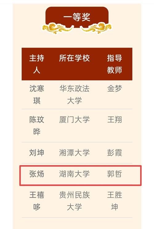 参赛队伍由郭哲教授担任指导老师,由2023级本科生张炀担任负责人,成员包括2023级本科生甘欣平、何雪、胡稼慧、杨斐冉、张莹慧、邹艳萍。在历时数月的备赛过程中,全体成员充分发挥主动性和创造性,高质量完成了实证研究、资料梳理与条文起草等各项工作。她们立足湖南省情,系统梳理本土诉求,以问题为导向精心起草了《湖南省实施〈中华人民共和国民营经济促进法〉规定(草案)》,构建了富有湖湘特色的地方立法方案。