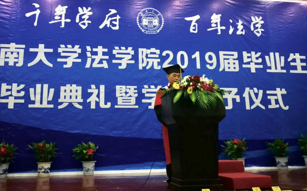 下一环节是院长致辞,屈老师以“法治日进,盛德日新”为主题,为毕业生送别。屈老师以“变革”为主线,从中国的时代变革谈到法治变革,从湖大博彩平台