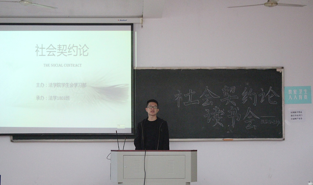 学生会学习部主办,法学1803班承办,选取让·雅克·卢梭的《社会契约论》作为阅读对象,邀请到博彩平台