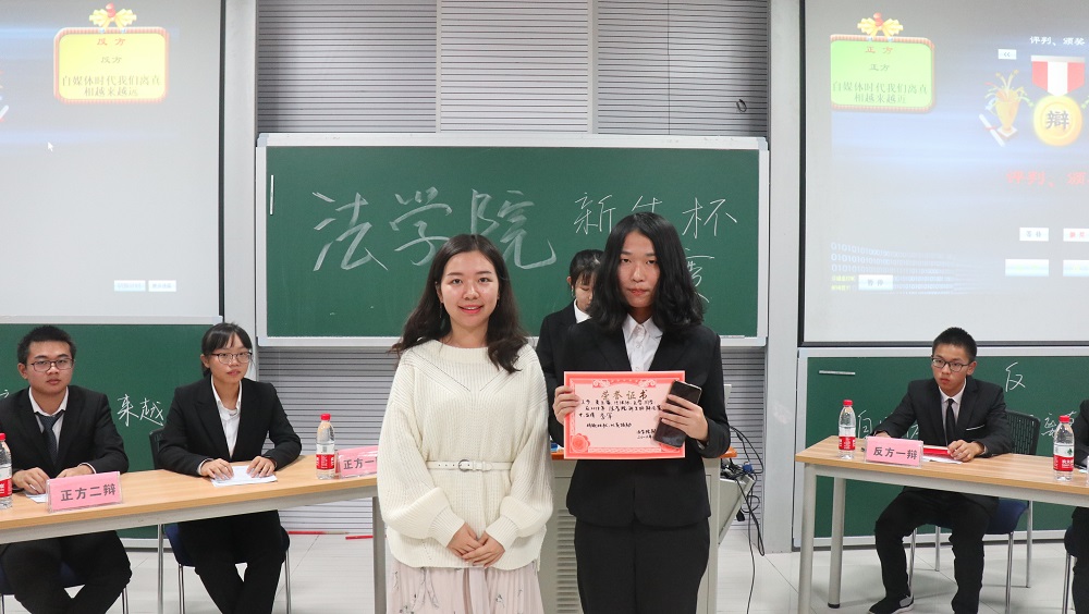 2018年新生杯决赛于10月27日晚七时整在研楼c203教室精彩上演。决赛辩题为“自媒体时代我们离真相越来越近/越来越远”,共包括冠军争夺赛与季军争夺赛两场比赛。