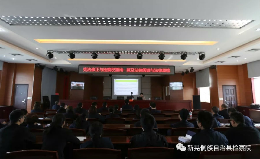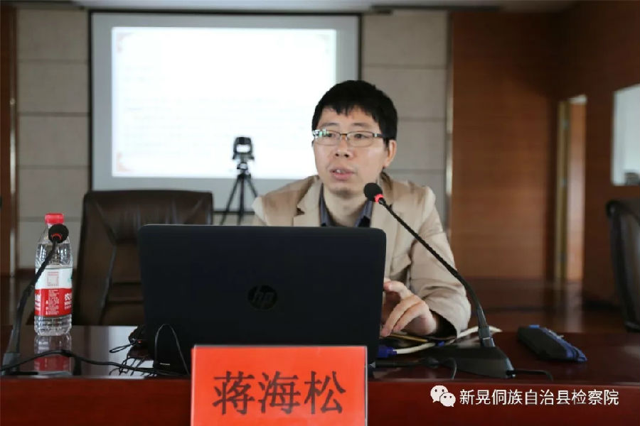 蒋海松副教授受邀为怀化市新晃侗族自治县检察院进行讲座《宪法修正与检察权重构——兼及法律阅读与法律思维》。新晃县检察院党组书记、检察长吴晖主持讲座,全体干警认真聆听了讲座。