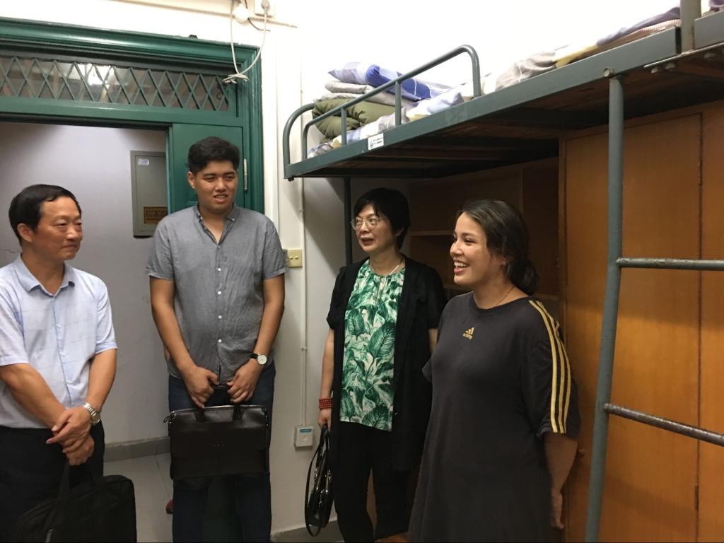 当晚,院党委书记李连友、党委副书记、副院长付蓉芬两位领导在新生辅导员王浩老师的陪同下,前往天马学生公寓,视察新生宿舍并慰问远道而来的新生们。慰问过程中,两位书记详细的询问了新生们的姓名、籍贯,并激励他们好好学习、全面发展,祝愿他们在博彩平台