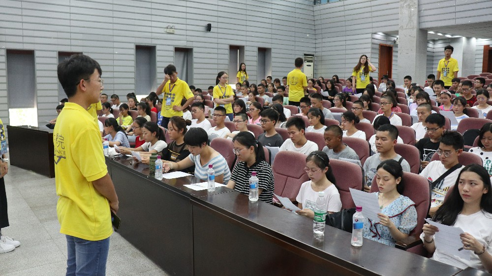 校歌。随后,迎新团队向新生简单介绍军训基本要求,并着重强调“精神面貌”、“纪律意识”、“集体意识”等内容。见面会最后,新生以班级为单位,在各班班级助理的带领下,分别前往学院102、321、322等教室,开展入学以来第一次班会。各班班会上,新生逐次做自我介绍,与班级同学及班级助理相互熟悉。
