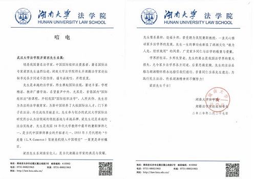 师生并湘籍法学家论坛秘书处各方同道不胜伤悼。谨专函致唁,并慰哀衷。
