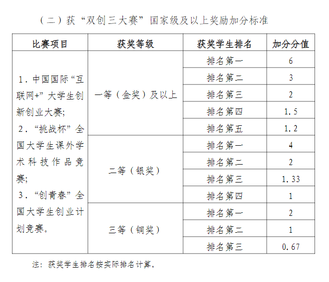 推荐优秀应届本科毕业生免试攻读硕士学位研究生工作实施办法》湖大教字〔2021〕15号文件中关于专项评价成绩(二)加分标准
