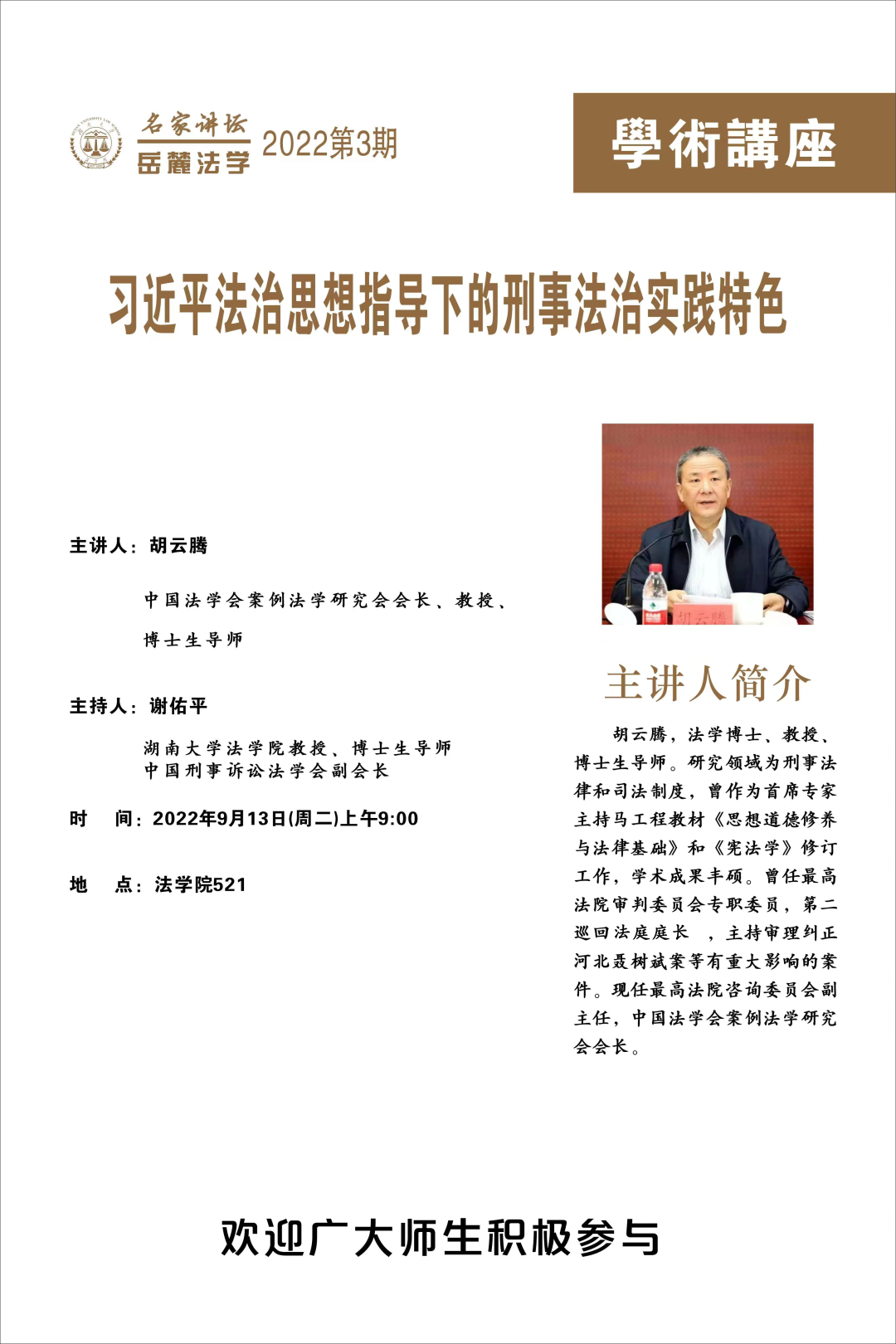 名家讲坛岳麓法学2022年第3期学术讲座
