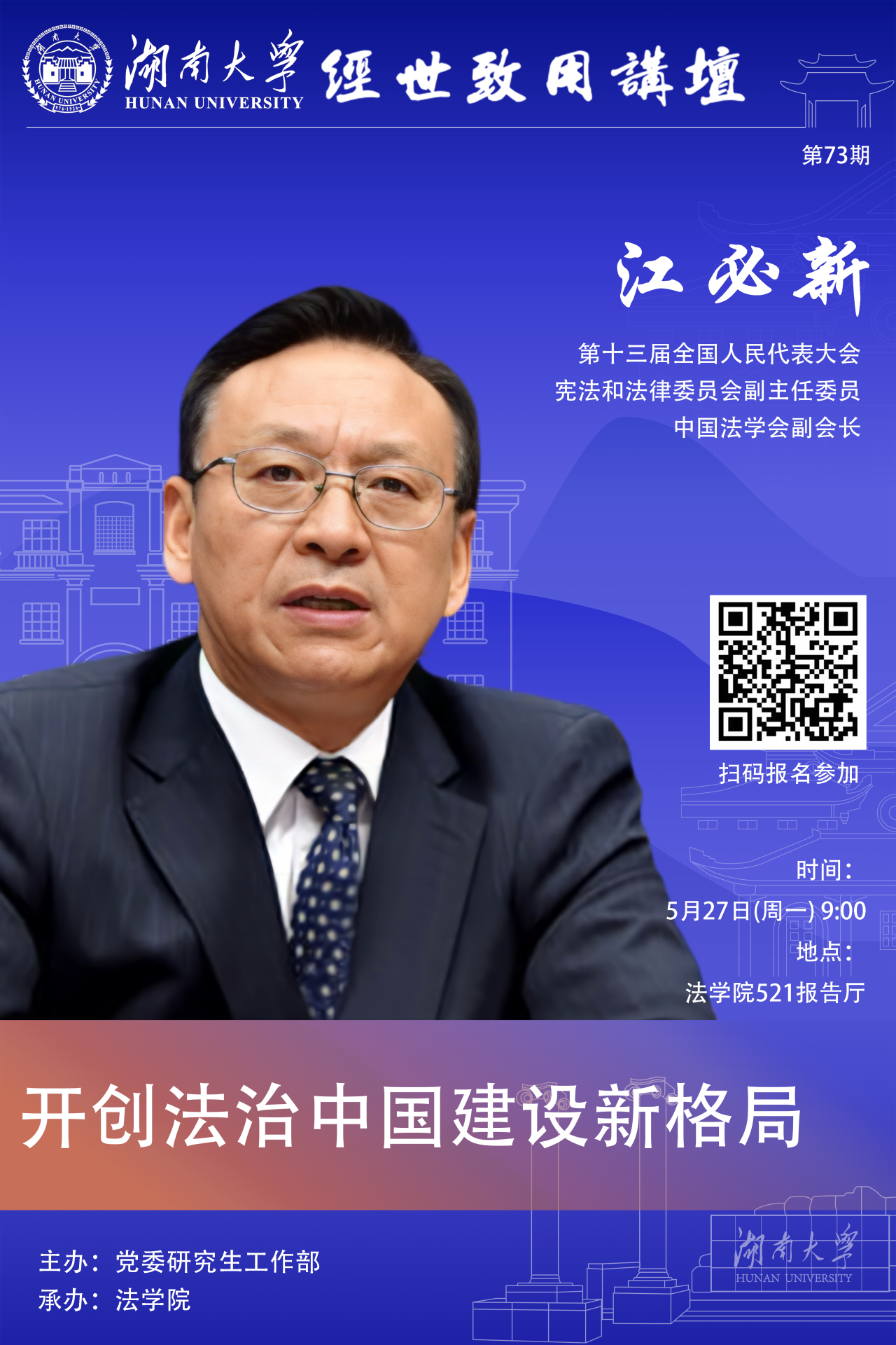 5月27日9:00邀请第十三届全国人民代表大会宪法和法律委员会副主任委员、中国法学会副会长江必新老师于博彩平台