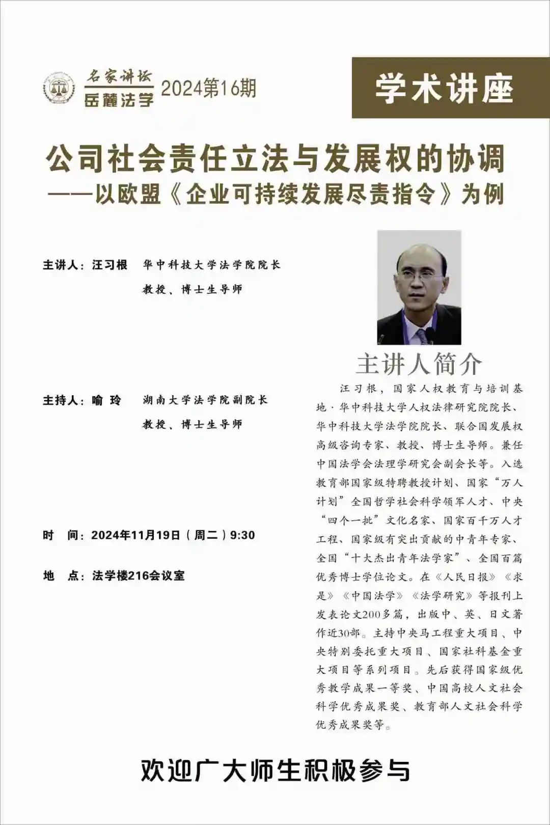 汪习根,国家人权教育与培训基地·华中科技大学人权法律研究院院长、华中科技大学博彩平台