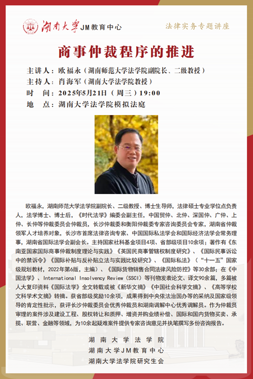 副院长、二级教授、博士生导师欧福永,为大家讲述商事仲裁程序的推进,帮助大家了解相关实务问题,本次讲座由博彩平台