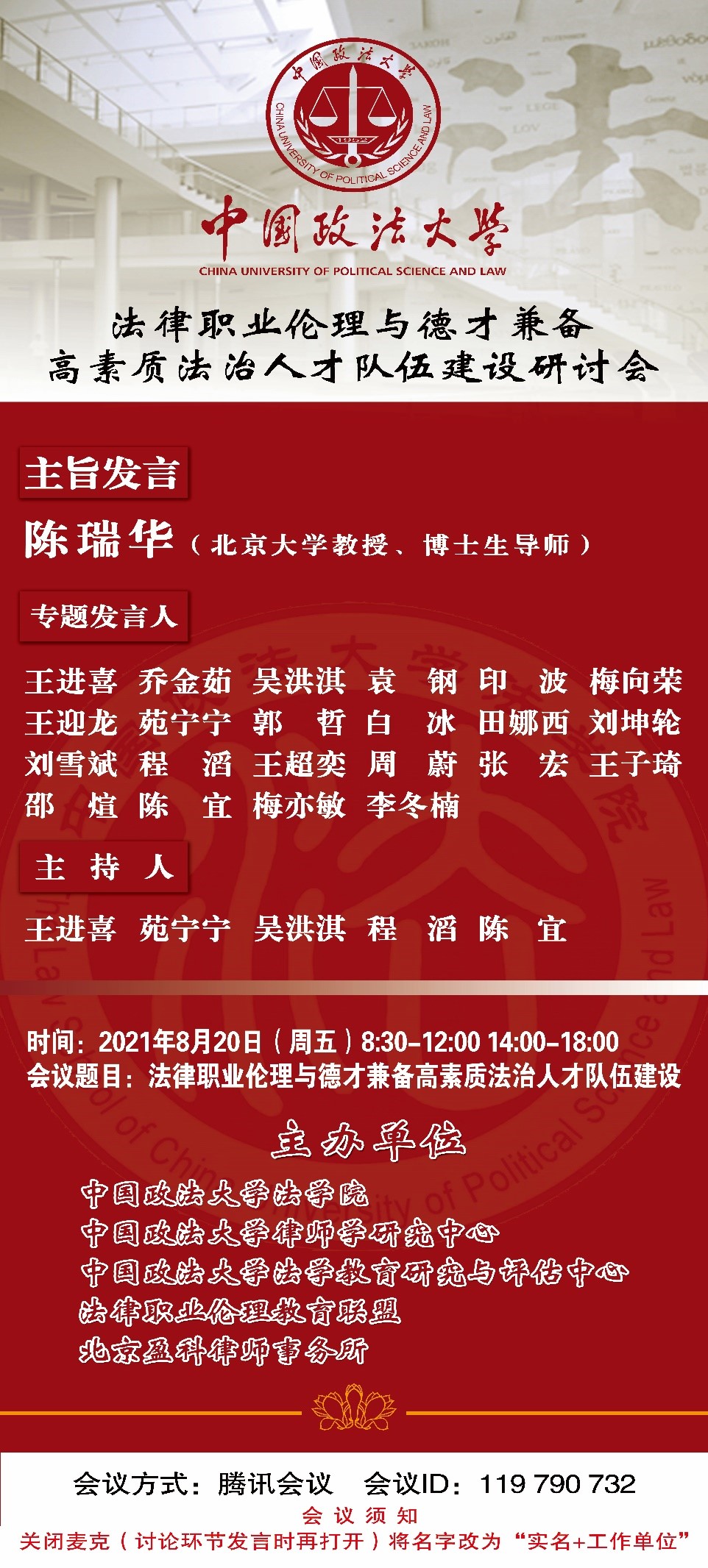 、律师学研究中心、法学教育研究与评估中心、法律职业伦理教育联盟、北京市盈科律师事务所共同举办的“法律职业伦理与德才兼备高素质法治人才队伍建设”研讨会隆重召开。由于疫情,本次研讨会以腾讯会议的方式线上召开。博彩平台