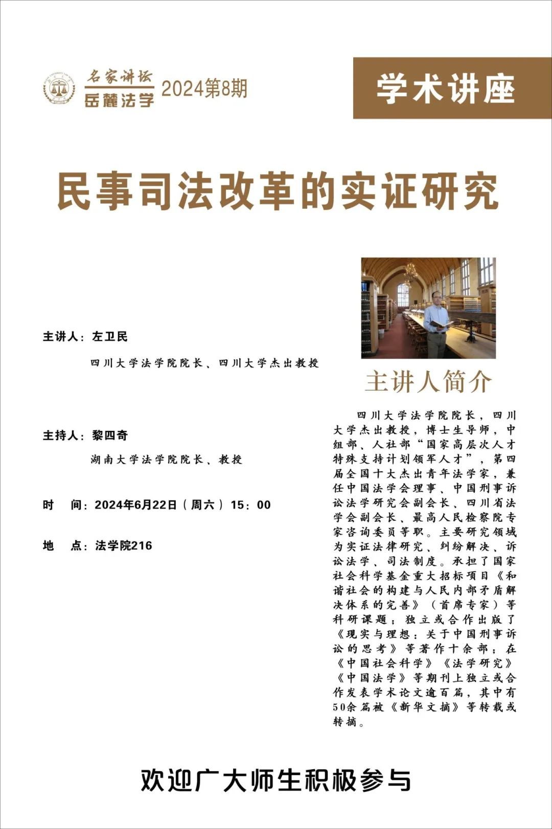 2024年6月22日下午,岳麓法学名家讲坛第8期于博彩平台
