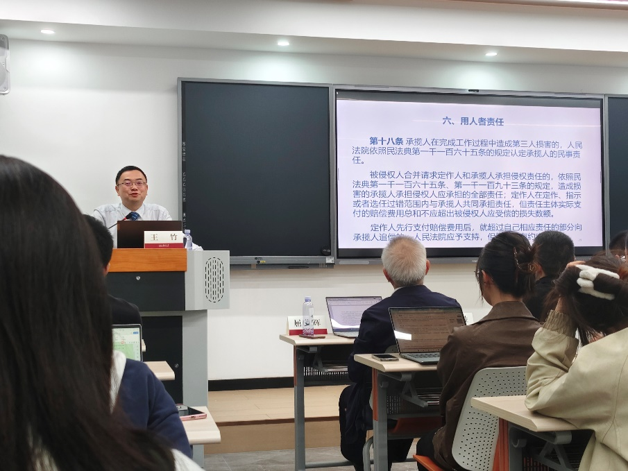 在讲座过程中,王竹教授简要介绍了《民法典侵权责任编司法解释(一)》的体例,对该司法解释进行了逐条梳理,深入剖析了每一条文背后的法理逻辑。