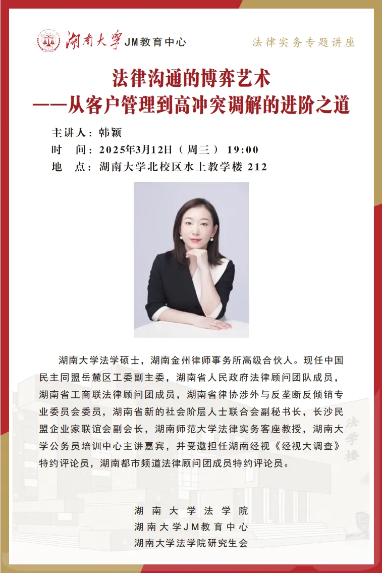 2025年3月12日晚19:00,湖南金州律师事务所高级合伙人韩颖律师在博彩平台