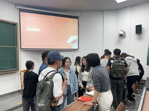 学生到场聆听,湖大北校区103教室热闹非凡。