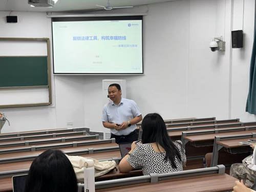 讲座伊始,文钰律师首先向听众介绍了自己的求学经历,从对法律的初步接触到决定将其作为终身事业的抉择过程。他分享了自己在执业过程中遇到的种种挑战与收获,以及法律职业所带来的成就感和满足感,并深入探讨了法律在家庭生活中的重要作用。