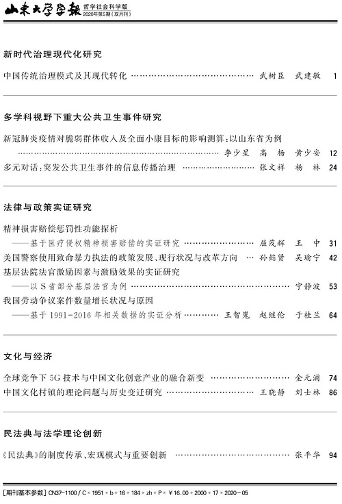 屈茂辉教授与博士研究生王中在CSSCI《山东大学学报(哲学社会科学版)》2020年第5期合作发表《精神损害赔偿惩罚性功能探析—基于医疗侵权精神损害赔偿的实证研究》,对精神损害赔偿惩罚性功能进行了实证检验并基于实证结果展开规范性探讨。