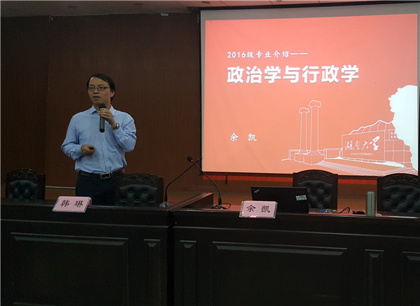 的政治学时,余老师从政治学办学历史、师资介绍、毕业生去向、课程设置等方面为同学们作了详细讲解,并为同学们推荐了10本政治学入门读物。